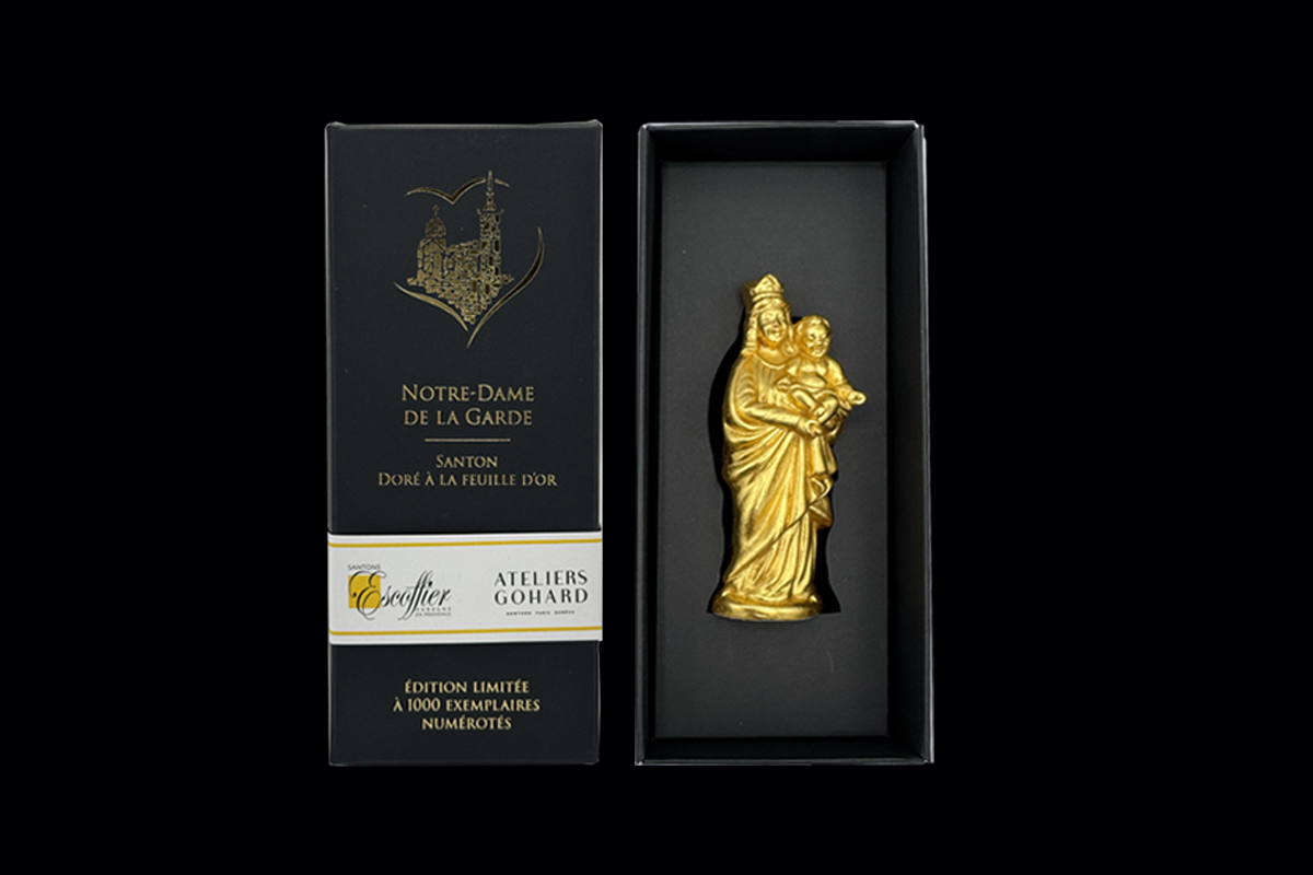 Statue de Notre-Dame de La Garde 60 cm, en résine dorée.